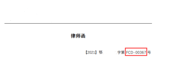 备注:律师函编码需要打开律师函文件,在右上角显示的英文字符+数字间距(如FCD-00367)